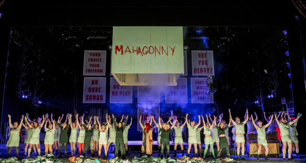 What’s the worst crime in Mahagonny, the spider-web city built by three cons in order to extract a living out of sucker tourists? Not having any cash. ENO knows all too well how that particular predicament feels. Somehow, though, Jamie Manton’s new production of Kurt Weill and Bertolt Brecht’s opera manages to make a virtue of thriftiness, yet still feels substantial.